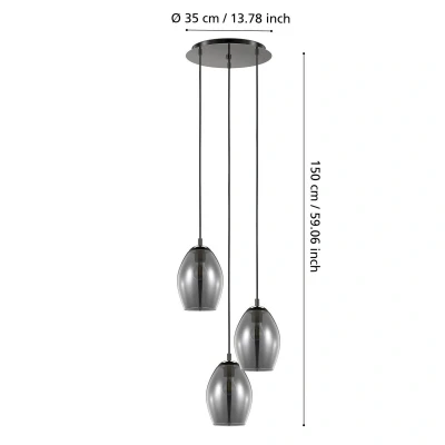 EGLO Stars of Light Estanys pendant light – elegance meets versatile lighting design The EGLO Stars of Light Estanys pendant light combines modern design with high-quality materials such as glass and steel. The combination of black and black-transparent finishes gives the light a timeless elegance that blends seamlessly into various interior design concepts. With its 3-bulb construction, it provides uniform and atmospheric lighting that creates a stylish ambience in both the dining room and the living room. The option of adjusting the pendant light via an external dimmer opens up flexible lighting design for different needs and moments. Whether for a cosy dinner or an inspiring environment, the light adapts to the requirements and thus becomes a functional highlight in any room.