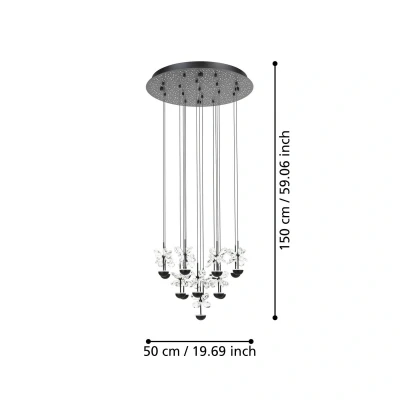 The Pianopoli pendant light from the EGLO Stars of Light series combines modern design with high-quality workmanship. Made of steel and brilliant glass, it adds stylish accents to dining and living areas. The clear and black colour scheme emphasises its timeless elegance and blends harmoniously into various interior styles.