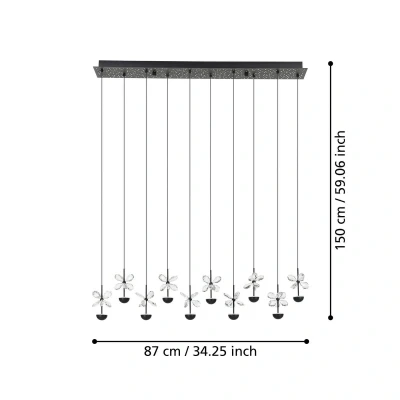 The Pianopoli hanging light from the EGLO Stars of Light series combines modern design with high-quality functionality. Made of robust steel and elegant brilliant glass, it adds stylish accents to any living room or dining room. The combination of black and clear finishes emphasises the elegant look and makes the light an eye-catching feature in any interior.
