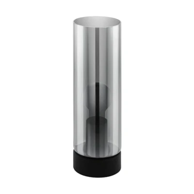 This lamp combines a slim black metal base with a cylindrical glass in a smoked glass look and provides stylish lighting accents in the room The lamp is conveniently operated via a switch on the cable and allows flexible placement on tables and dressers Dimensions: diameter 10 cm, height 31 cm