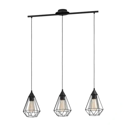 Eglo Tarbes 3 Flame Vintage Pendant Light, Dinning Room Retro Steel Hanging lamp, E27 Socket