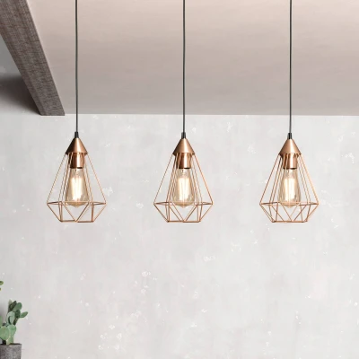 Eglo Tarbes Vintage Pendant Lamp, 3 Flame Retro Ceiling Light, Steel Coloured in Copper and Steel, E27 Socket