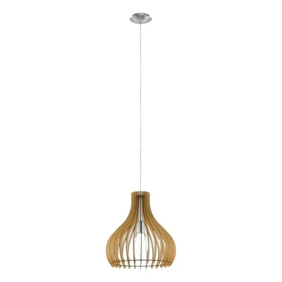 Introducing the Eglo Tindori - a striking 1 Light Ceiling Pendant that perfectly marries style and functionality. Crafted with a sleek satin nickel finish and a beautifully designed wooden shade made of maple, this pendant light effortlessly complements both vintage and modern décor.