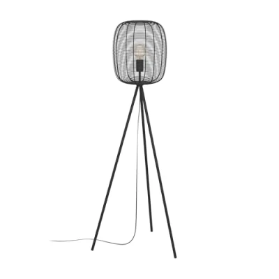 The tripod standing lamp with its black tripod and rounded metal lampshade made of black, wound wire fits seamlessly into the vintage and industrial trend The corner floor lamp provides unusual lighting for any living space – whether in the bedroom, living room or dining room Dimensions: Height: 140.5 cm, diameter: 32.5 cm