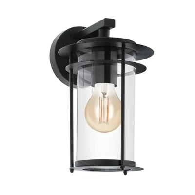 Eglo Valdeo Outdoor Wall Lamp, Porch Lighting, Black Galvanized Steel and Clear Glass Lantern, E27 Socket, IP44