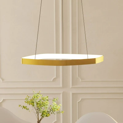 AmazonThe pendant ceiling light fixture made of metal in a brushed brass finish has a suspended, organically shaped LED profile and blends seamlessly into modern interiors thanks to its stylish design The LEDs under the white plastic cover emit a pleasant warm white light (25,2 watt, 3000 Kelvin, 3000 lumens) and are dimmable with a matching rotary dimmer on the wall Dimensions: height: 110 cm/ 43.3 in, diameter: 58 cm/ 22.8 in