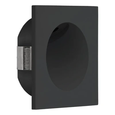 This wall recessed spotlight made of black die-cast aluminium features a side-mounted spot for indirect lighting – ideal for staircases, hallways or living rooms Thanks to the included installation ring, assembly is particularly straightforward with a cutout of 6.3 cm and an installation depth of only 4 cm This product is a containing product with a light source of energy efficiency class G; Containing products are luminaires that can be disassembled for separate inspection of the contained light source(s)