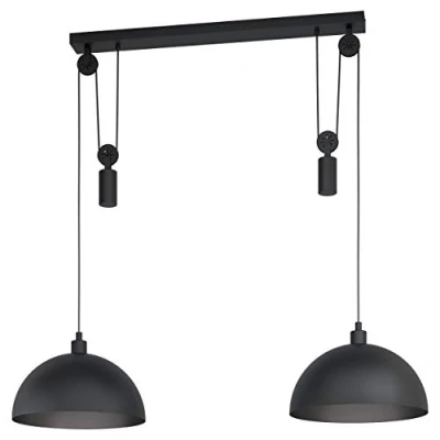 The pendant light made of black steel with round lampshades blends seamlessly into trends such as vintage, industrial and retro The height of the lamps can be individually adjusted using the counterweights on the pendulums With its special design, the pendant lamp offers a highlight in any room – whether in the kitchen, in the living room or in the dining room above the dining table The filament LED bulbs are not included and are available separately under "EGLO 11502" Suitable for any bulb with E27 socket, maximum 40 watts per socket. Dimmable depending on the bulb used Dimensions: height: max. 110 cm, length: 118 cm, width: 38 cm