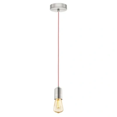 EGLO YORTH 60W Steel Pendant Light Nickel Matt Pink Cable