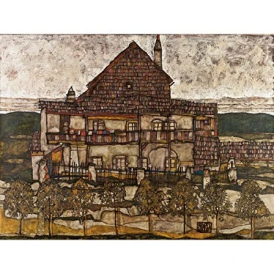 Egon Schiele Haus mit Schindeldach Altes II, großer Kunstdruck, Wanddekoration, Premium Wandbild