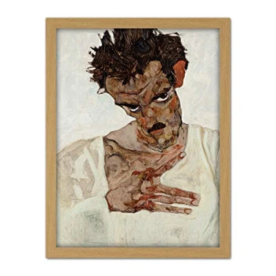 Egon Schiele Self Portrait With Lowered Head Large Framed Art Print Poster Wall Decor 18x24