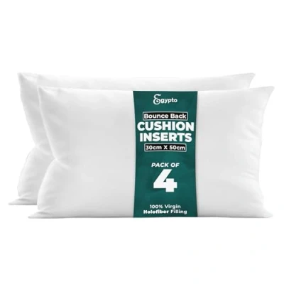 EGYPTO Pack of 4 Cushion Inserts 30cm x 50cm Plump Bounce Back 12x20 Inch Pads Hypoallergenic Sofa & Throw Pillows Inner Made in UK