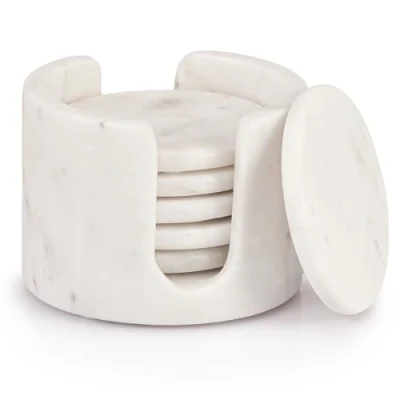PREMIUM MARBLE CONSTRUCTION - Crafted from natural marble, ensuring durability, heat resistance, and a timeless look. 6-PIECE COMPLETE SET - Includes six round coasters, perfect for daily use or entertaining guests. MARBLE STORAGE HOLDER - Elegant marble holder keeps coasters neatly stacked and organized. ANTI-SLIP PADS - Soft pads on the bottom prevent slipping and protect furniture surfaces from scratches. PERFECT GIFT CHOICE - Great for housewarmings, weddings, birthdays, and holiday presents. EASY TO CLEAN - These marble coasters are very easy to clean. Simply hand-wash them with mild soap and warm water, and they will maintain their lustre and functionality.