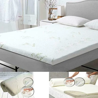 Luxury Hotel Quality Super Soft Memory Foam Bamboo Mattress Toppers. 2.5cms Thick, 4.0cms and 5.0cms Thick Mattress Toppers. All Seasons Comfortable Memory Foam Mattress Toppers for a Good Night Sleep. Elasticated Four Corners to Fit Mattress Up To 30cm (12") deep. All Bed Sizes Available in 3 Different Thinkesses of Bamboo Memory Foam Mattress Toppers. Super Soft Mamboo Fabric on Outer Side with 100% Memory Foam Mattress Topper inside. Care: Puter Bmaboo Cover is Machine Washable at 40 Degree / Tumble Dry