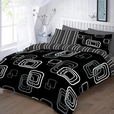 EHD Blake Stripes Design Modern Style Duvet Cover Sets Quilt Reversible Bedding NZ (Black, King)