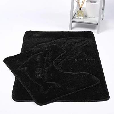 EHD Dolphin Design 2 Piece Bath Mat and Pedestal Sets Non Slip Water Absorbent Bathroom Rugs (Black)