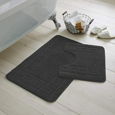 EHD Greek Design 2 Piece Bath Mat and Pedestal Sets Non Slip Water Absorbent Regular Size Bathroom Rugs (Charcoal)