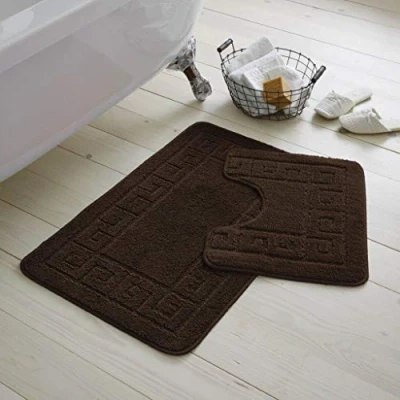 EHD Greek Design 2 Piece Bath Mat and Pedestal Sets Non Slip Water Absorbent Regular Size Bathroom Rugs (Chocolate)