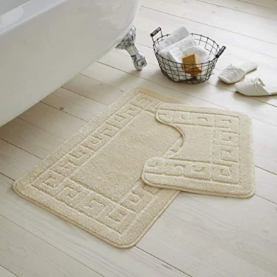 EHD Greek Design 2 Piece Bath Mat and Pedestal Sets Non Slip Water Absorbent Regular Size Bathroom Rugs (Cream)