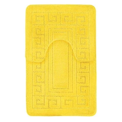EHD Greek Design 2 Piece Bath Mat and Pedestal Sets Non Slip Water Absorbent Regular Size Bathroom Rugs (Lemon)