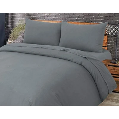 EHD Plain Flannelette 100% Natural Brushed Cotton Luxurious Duvet Cover Sets Reversible Bedding With Matching Pillowcases (Grey, Single)