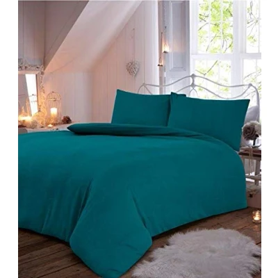 EHD Plain Flannelette 100% Natural Brushed Cotton Luxurious Duvet Cover Sets Reversible Bedding With Matching Pillowcases (Teal, Double)