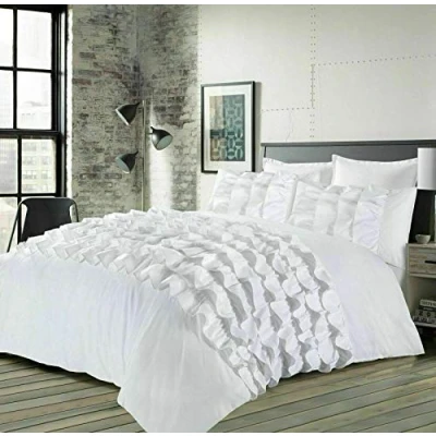 EHD Priscilla Frills Luxurious Designer Style Duvet Cover Sets Quilt Bedding (White, Single)