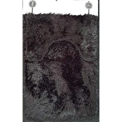 EHD Shaggy Super Soft 2 Piece Bath Mat and Pedestal Sets Non Slip Water Absorbent Regular Size Bathroom Rugs (Black)