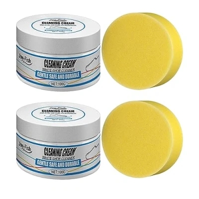 EHOTER Jue Fish Cleaning Cream 2023 New Multi Functional White Shoes Cleaner and Stain Removal Shoe with Sponge (2PCS)