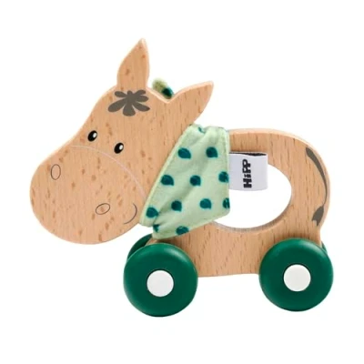 Eichhorn Baby HiPP Collection Sliding Donkey with Fabric, Silent Silicone Wheels, 12 cm Long, 100% FSC Certified Beech Wood, Suitable for Children from 1 Year