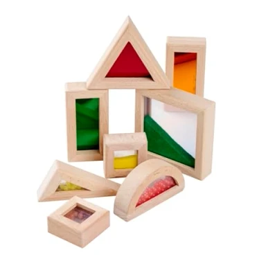 Eichhorn Building Blocks with Window 8 Piece Set of Coloured Beech Wood Elements Sand, Balls or Mirror, Promotes Sensory and Motor Skills, Wood, Acrylic ABS, A