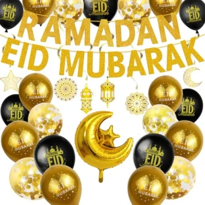 Eid Mubarak Ramadan Celebration Decoration Latex Balloons Hanging Banner (deco)