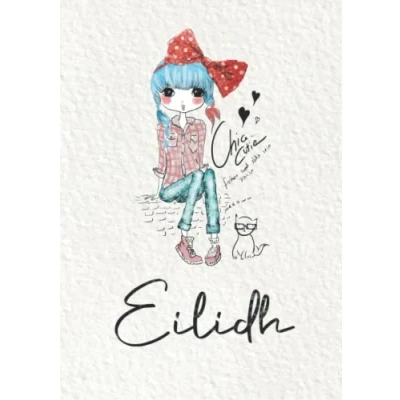 Eilidh: Notebook A5 Personalized name Eilidh Birthday gift for women, girl, mom, sister, daughter Cover: Fashion girl with cat 120 lined pages journal, small size (ca. 6 x 9 inches)
