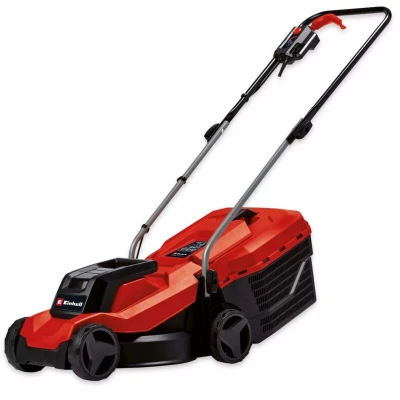 General description The Einhell GC-EM 1000/32 is a robust and maneuverable electric lawn mower designed for hobby gardeners, providing excellent mowing results in small gardens. Its powerful motor generates high torque, allowing for efficient progress through dense grass. The mower features a 3-level cutting height adjustment for each wheel, ensuring precise customization to meet individual mowing needs. With a folding long handle, it can be stored in minimal space, and a cable-relief clip protects the power cable from wear. The large wheels reduce stress on the lawn, making it easy to mow even in challenging terrain. The mower is suitable for lawns up to 300 m². Technical specifications Power: 1000W Cutting width: 32cm Grass box capacity: 30L Recommended lawn area: up to 300 m² Cord length: 10m Installation Easy assembly with a quick clamp function for the folding handle. Usage 3-stage wheel cutting height adjustment for desired lawn appearance. Grass box includes a fill-level