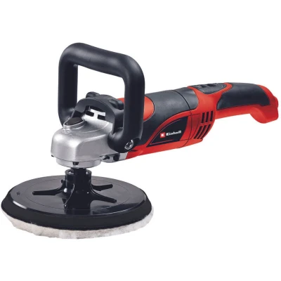 General description The Einhell Polisher CC-PO 1100/1 E is a versatile 2-in-1 tool designed for both polishing and grinding/sanding tasks. This powerful and robust machine is perfect for ambitious DIY enthusiasts, allowing for efficient polishing of varnished surfaces and grinding of wood, plastics, and metal. Its ergonomic design features a soft grip for safe handling, making it ideal for tasks such as car polishing. Technical specifications Power: 1100 W Idle Speed Max: 3500 min -1 Idle Speed Min: 1000 min -1 Polishing Pad Diameter: 180 mm Compatibility and accessories 1 foam attachment for car polishing 2 synthetic polishing caps 2 sanding paper disks of 60 granulation 2 sanding paper disks of 80 granulation 2 sanding paper disks of 120 granulation Installation Spindle locking system for easy attachment of polishing disks Hook-and-loop fastener for quick changes of attachments Usage Finely adjustable electronic speed control via LCD for optimal adaptation to the surface being