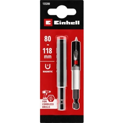 Einhell Extendable Bit Holder with 1/4" E 6.3 Shank, 80 122 mm, (Aluminum Sleeve, Guide Chrome Vanadium, Permanent Magnet)