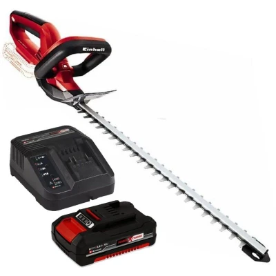 The Einhell GE-CH 1846 Li Kit cordless hedge trimmer is designed for efficiency and convenience, making it an ideal choice for maintaining hedges, shrubs, and bushes on extensive grounds and allotments without access to the electric power grid. With its lightweight construction and compact design, this hedge trimmer provides an excellent user experience, allowing for comfortable operation during extended use.