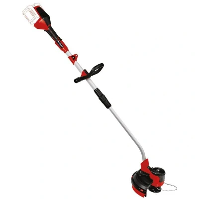ManoManoGeneral description Member of the Power X-Change family, the Einhell Power X-Change PXC 18V Cordless Grass Trimmer offers optimum cutting results thanks to its powerful thread technology. It features speed control for precise cuts and an individually adjustable additional handle for comfortable two-handed guidance. The lightweight and separable aluminium guide bar enhances maneuverability, while the Flowerguard protects surrounding plants during trimming. A carrying strap is included for back-friendly operation, and the thread spool has an automatic jog for quick thread tracking. Please note that this product is supplied without a battery and charger, which are sold separately. Technical specifications Voltage: 18 V Cutting width: 33 cm Material: Aluminium guide bar Weight: Lightweight design