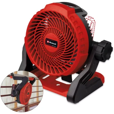 General description The Einhell GE-CF 18/2200 Li Power X-Change Fan is a versatile cordless fan designed for both indoor and outdoor use. It ensures optimal air supply and distribution with its adjustable airflow settings. The fan features a compact and portable design, making it suitable for various environments such as terraces, balconies, studies, kitchens, and workshops. Technical specifications Fan Wheel Diameter: 180 mm Max Speed: 2200 min -1 Number of Speed Steps: 3 Runtime: Up to 18 hours with a 5.2 Ah PXC battery Compatibility and accessories Part of the Power X-Change family; compatible with over 200 Einhell devices Requires 1x 18 V battery (not included) Installation Numerous fastening options for universal use Usage Ideal for both indoor and outdoor applications Customizable airflow with 3 adjustable levels Infinitely variable adjustment of the fan head Other information Comes as a Bare Unit; battery and charger not included
