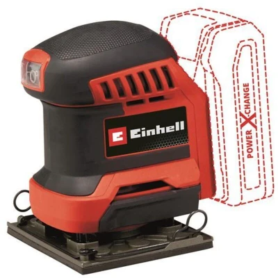 General description The Einhell cordless palm sander TE-OS 18/113 Li-Solo is a compact and powerful tool from the versatile Power X-Change family. It is designed for sanding flat surfaces made of wood and wood-based materials, effectively removing paint or varnish with its 1.8 mm oscillating circuit. Technical specifications Model: TE-OS 18/113 Li-Solo Oscillation circuit: 1.8 mm Sanding plate dimensions: 101 x 113 mm Included sandpaper: 2x P120 Compatibility and accessories Compatible with standard sandpaper via integrated clamping device External suction system compatible (e.g., Einhell wet/dry vacuum cleaner) Installation Quick sandpaper exchange using hook-and-loop fastening Dust collection box with removable pleated filter for integrated dust extraction Usage Ideal for sanding flat surfaces of wood and wood-based materials Effective for removing paint or varnish Dust-proof on/off switch for enhanced durability Compact design with softgrip surfaces for comfortable handling Other