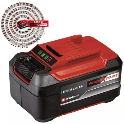The Einhell Power X-Change PLUS 18V Lithium-Ion 5.2 Ah Battery is an advanced energy solution specifically designed to enhance the performance and convenience of your DIY and gardening projects. This robust rechargeable battery is part of the multifunctional Power X-Change system, allowing seamless compatibility across a range of Einhell devices.
