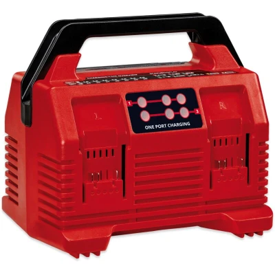 General description Universal usability for all Power X-Change rechargeable batteries. The Einhell 4512102 2x2 Power X-Quattrocharger 4A 18v Power X-Change Charger offers a cost-effective and environmentally friendly solution with the flexibility to charge multiple batteries simultaneously. It features continuous parallel charging of two batteries, ensuring fast availability and continuous operation. The charger is designed for easy transport with a carrying handle and is lightweight for mobile usage. With four battery slots and only one socket, it saves space at the worksite. Technical specifications Charging technology: 4-Amp fast-charging Battery slots: 4 Weight: Low weight for easy transport Usage Continuous parallel charging of two batteries Refresh mode to reactivate deeply discharged batteries Permanent battery monitoring for optimum charging 6-stage status LED display for current information per battery