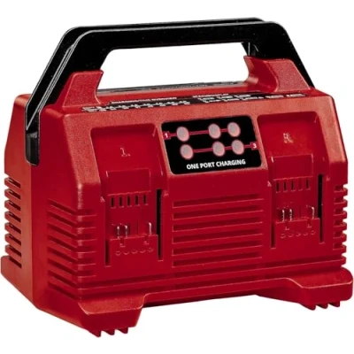 ManoManoGeneral description Universal usability for all Power X-Change rechargeable batteries. The Einhell 4512102 2x2 Power X-Quattrocharger 4A 18v Power X-Change Charger offers a cost-effective and environmentally friendly solution with the flexibility to charge multiple batteries simultaneously. It features continuous parallel charging of two batteries, ensuring fast availability and continuous operation. The charger is designed for easy transport with a carrying handle and is lightweight for mobile usage. With four battery slots and only one socket, it saves space at the worksite. Technical specifications Charging technology: 4-Amp fast-charging Battery slots: 4 Weight: Low weight for easy transport Usage Continuous parallel charging of two batteries Refresh mode to reactivate deeply discharged batteries Permanent battery monitoring for optimum charging 6-stage status LED display for current information per battery