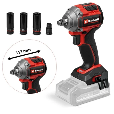 General description The Einhell TP-CW 18/260-C Li BL PROFESSIONAL Impact Wrench is a high-performance tool designed for powerful screwdriving tasks and effortless tire changes. It features a compact and lightweight design, making it approximately 30% smaller than similar impact wrenches, enhancing its flexibility and ease of use. Driven by an advanced Einhell Brushless motor, this impact wrench delivers more power and longer runtimes compared to conventional carbon brush motors. A 10-year warranty on the Brushless motor is available upon online registration. Technical specifications Max torque: 260Nm Max release torque: 500Nm Drive: 1/2in (12.7mm) external square bit socket Battery: 18V Lithium-ion (not included) Weight: Compact and lightweight design Compatibility and accessories Part of the Power X-Change family Includes a bit adapter for screwing Includes a nut set for changing tires Installation No specific installation information provided. Usage Three torque settings for optimal