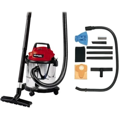 VERSATILE CLEANING TOOL: The 1250W motor of this wet-dry vacuum cleaner offers powerful suction whether cleaning in the house, workshop, car or garage STAINLESS STEEL CONTAINER: The cylinder vacuum cleaner features a 12 litre, rust-proof stainless steel container that collects everything from rough debris, fine dust, wet or dry dirt, including fluids whilst being easy to maintain and clean INTEGRATED BLOWER CONNECTION: There are some tight spots that even the crevice nozzle can't reach. This is where the integrated blowing function comes into play. Simply plug in the hose and go. ROLLERS AND CARRYING HANDLE: The wet dry vacuum cleaner has four castors that, in combination with the carrying handle integrated in the motor head, make it easy to transport COMPLETE WITH ACCESSORIES: The combi-nozzle is perfect for cleaning carpets and hard floors and the crevice nozzle helps you to get into the tightest and hardest-to-reach areas with no problem. The dirt collection sack and filter bag collect particles and dust when dry vacuuming, and a foam filter for wet vacuuming is also included, Weight: 6.393405603 Pounds, Manufacturer: Einhell