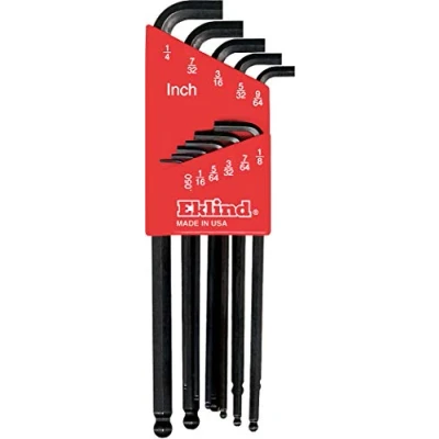 MADE IN AMERICA High quality, Industrial Grade Professional Tools made in the U.S.A. SMALL SAE SET contains all of the smaller, common, popular INCH Sizes:.050, 1/16, 5/64, 3/32, 7/64, 1/8 , 9/64, 5/32, 3/16, 7/32, & 1/4 EKLIND hex keys (allen wrenches) are used to drive internal hexagon socket (allen head) fasteners OPTIMUM STRENGTH These EKLIND tools are made with EKLIND Alloy Steel that is heat treated, quenched and tempered for optimum strength, torque and ductility for safety and coated with a rust resistant finish FAST AND EFFICIENT The EKLIND Ball Hex keys work at up to a 30 degree angle for access to hard to reach socket headed fasteners.ACCESS TIGHT SPACES The Stubby short arm key from EKLIND helps get your job done even in tight spaces.IDENTIFY YOUR TOOLS Inch sizes are color coded in red so you can reach for the correct tool quickly.KEEP YOUR KEYS ORGANIZED A plastic holder firmly holds each key in a sized marked hole so you always have the size you need at hand.MEETS OR EXCEEDS ALL APPLICABLE STANDARDS EKLIND tools meet or go beyond the standard regulations set forth in ANSI, ASME, RoHS, REACH, CA Prop 65 and Dodd Frank Conflict Minerals Legislation, Manufacturer: Eklind