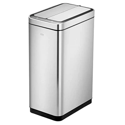 [MOTION SENSOR BIN] The EKO Deluxe Motion Sensor Bin features a lid that opens automatically at the wave of your hand, a quicker, cleaner way to put waste in the bin. It’s ideal for home and kitchen use or for people with disabilities [EFFORTLESS TOUCH OPENING] The rubbish bin has an option for touch opening to keep the bin open - perfect for longer tasks like peeling vegetables. All at the push of a button. Requires 6 x AA batteries (not included) [SLEEK FUNCTIONALITY] Technology meets beautiful design. The smart bin features an interactive display and a removable inner bucket that makes cleaning, bag changing, and waste disposal easy and convenient [SPACE EFFICIENT] The Deluxe Phantom Bin is made of high quality, fingerprint-resistant brushed stainless steel. It features a stylish space-saving design with a dual open lid to fit flat against your wall - perfect for any kitchen [EASY TO USE] Insert 4 AA alkaline batteries to power your EKO waste bin for up to 8 months( Note:Batteries not included). Avoid using rechargeable batteries. Enjoy reliable, long-term use with this durable and efficient waste solution
