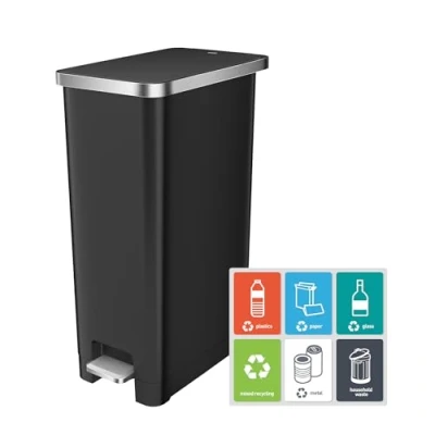 Effortless Recycling Kitchen Bin: The ultra-modern EKO Hana pedal bin makes waste disposal and recycling effortless. Perfect for smaller kitchens, this GRS-certified sleek pedal bin offers convenience and efficiency, helping you manage everyday waste with ease Stay-Open Lid: Features a durable pedal mechanism for easy, hands-free operation. Simply step on the pedal to open the bin, and the stay-open lever at the top ensures it remains open for longer tasks Soft-Close Lid: The pedal bin is designed with a soft-close lid that prevents slamming, allowing for a quiet and smooth closure. Experience a more tranquil and efficient waste disposal process, perfect for maintaining a tidy kitchen Removable Liner Ring: Designed to securely hold bin liners in place, preventing excess overhang for a neat and tidy appearance. Ideal for maintaining a clean and organised space in your home. Perfect for step pedal bins, enhancing functionality without compromising style Space-Saving Design: The sleek rectangular shape of this EKO pedal bin is perfect for fitting into tight spaces, making it an ideal choice for kitchen. This space-efficient design helps optimize your area while keeping it tidy and organized