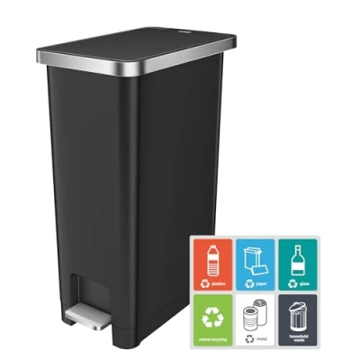 Effortless Recycling Kitchen Bin: The ultra-modern EKO Hana pedal bin makes waste disposal and recycling effortless. Perfect for smaller kitchens, this GRS-certified sleek pedal bin offers convenience and efficiency, helping you manage everyday waste with ease Stay-Open Lid: Features a durable pedal mechanism for easy, hands-free operation. Simply step on the pedal to open the bin, and the stay-open lever at the top ensures it remains open for longer tasks Soft-Close Lid: The pedal bin is designed with a soft-close lid that prevents slamming, allowing for a quiet and smooth closure. Experience a more tranquil and efficient waste disposal process, perfect for maintaining a tidy kitchen Removable Liner Ring: Designed to securely hold bin liners in place, preventing excess overhang for a neat and tidy appearance. Ideal for maintaining a clean and organised space in your home. Perfect for step pedal bins, enhancing functionality without compromising style Built-In Wheels: The 45L model features built-in wheels for easy movement, making it ideal for small kitchens or areas where space is limited. Perfect for tight spaces, this stylish bin fits seamlessly under counters and stays flush against walls