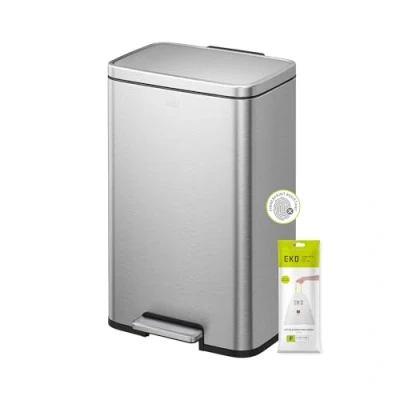 EKO Madison Matte Stainless 50 Liter/13.2 Gallon Step Trash Can w/Inner Liner Fingerprint Resistant Finish